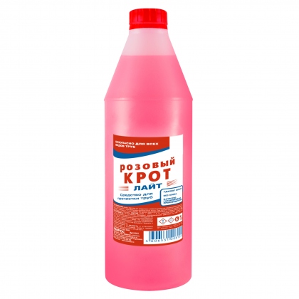 Главная → Наша продукция → Бытовая химия → Средство для прочистки фановых труб «Розовый крот» → Крот розовый Лайт, 1 л